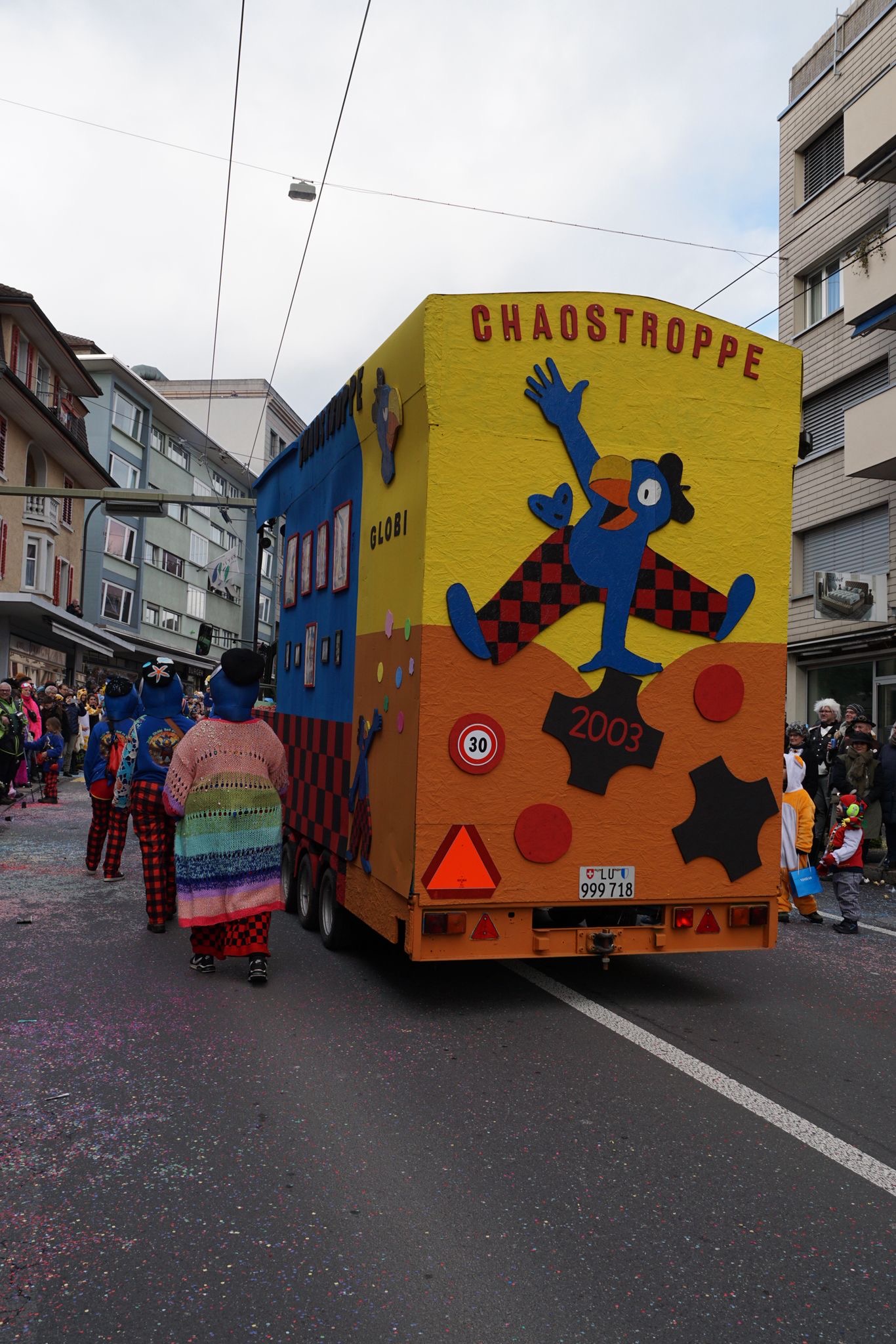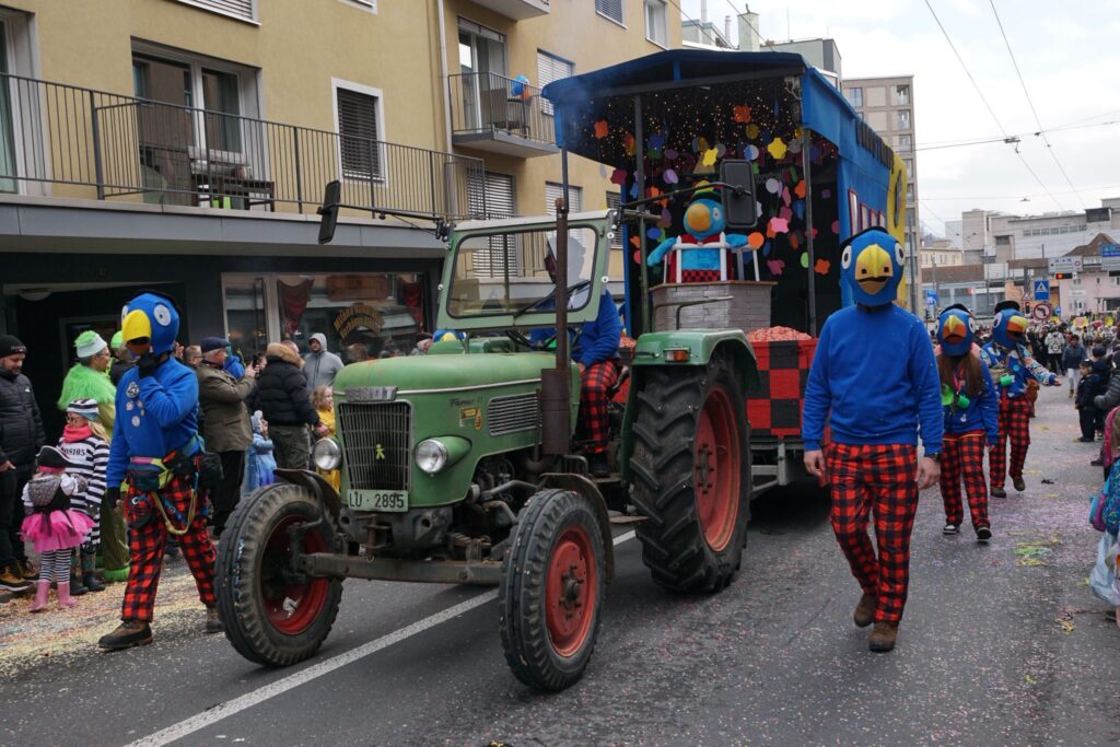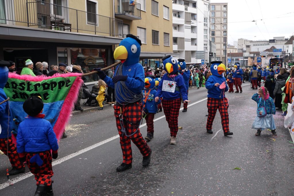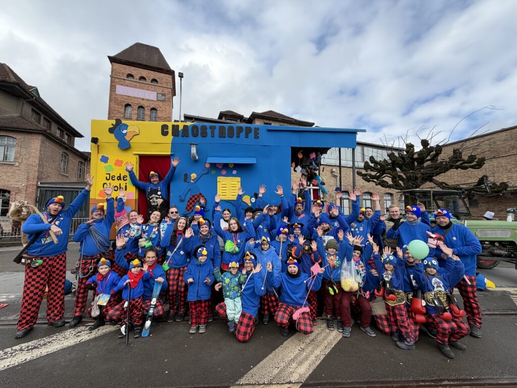 Sujet 2026 De Globi, au noch 100 Abentüürno frösch im Saft.Hed wie d Chaostroppe, scho vell erläbt ond gschafft.Drom weiss au jede Globi:D Fasnacht esch meh als nor es Hobby.